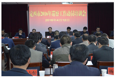 4月12日,定西市召开了2016年巡察工作动员培训会。这是继去年对安定、渭源、临洮3个县区和市委党校等28个市直单位开展第一轮巡察后,又启动第二轮巡察,安排部署对通渭、陇西、漳县、岷县4县和市人社局、教育局等13个市直单位的巡察工作。市委常委、纪委书记陈尊峰主持会议并讲话。