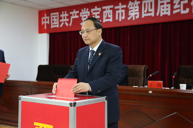 市委常委、市纪委书记王钧在四届市纪委一次全会上投票