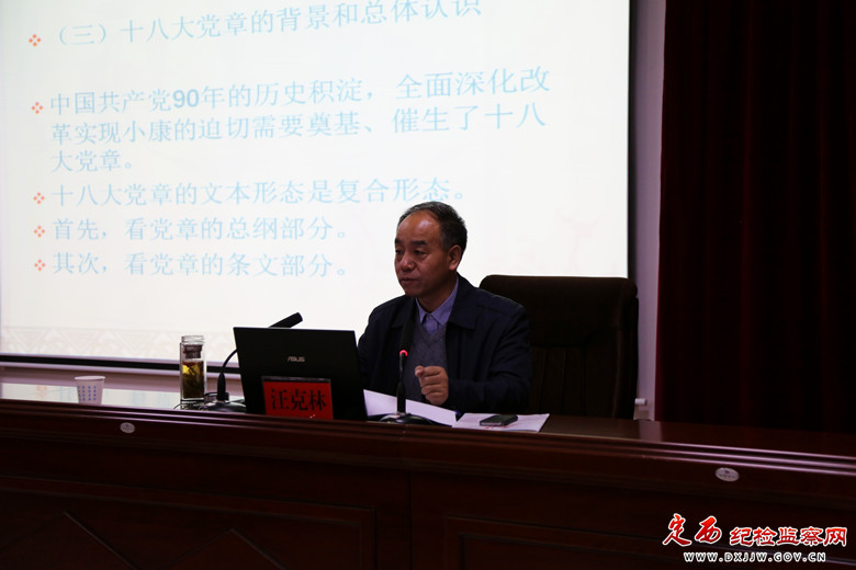 市委讲师团团长汪克林作题为“正确认识和把握新党章精神”的专题辅导讲座