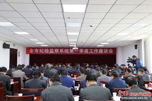 4月18日,全市纪检监察系统第一季度工作座谈会召开。会议通报了2017年第一季度全市纪检监察机关纪律审查情况,听取了各县区第一季度纪检监察工作开展情况汇报,并就下一步如何抓好重点工作进行安排部署。