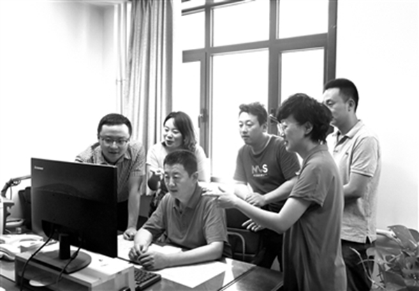 图为甘肃省纪委监委信访室干部在认真学习纪检监察干部培训系列课程光盘后,进行探讨交流,促进提升学习实效。(王彬 摄)
