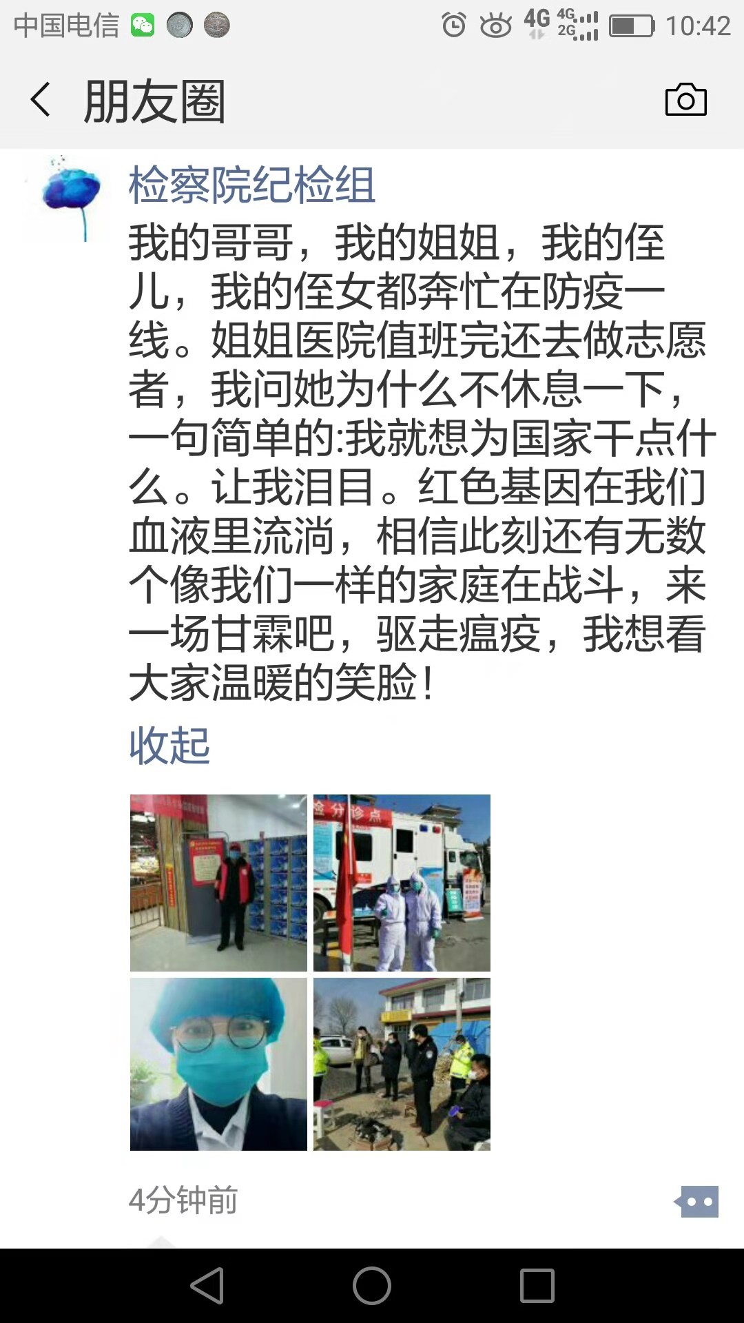 二姐是临洮县人民医院体检科主管护师,这些天来,她一直坚守在一线接诊。仅2月5日就给130多人采集了血样,6日一大早她又报名参加了社会组织管理局的志愿者,问她:为什么不好好休息一下?“我就想着为国家干点什么。”一句简单而朴实的话令我肃然起敬!