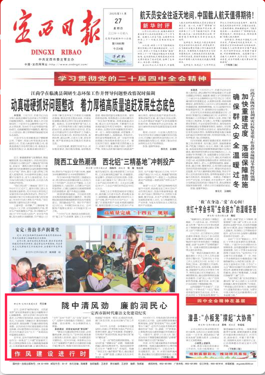 行走在陇中大地,清风拂面、廉韵悠长。从机关廉政教育到社区家风宣讲,从文艺舞台到线上线下传播,“清廉定西”品牌影响力持续扩大,党员干部纪律意识、规矩意识显著增强,全社会崇廉尚洁氛围日益浓厚,为定西高质量发展提供着源源不断的精神动力。